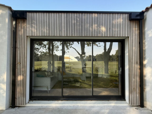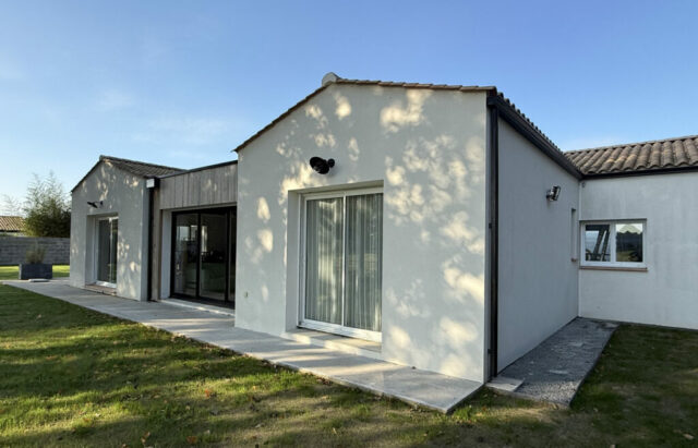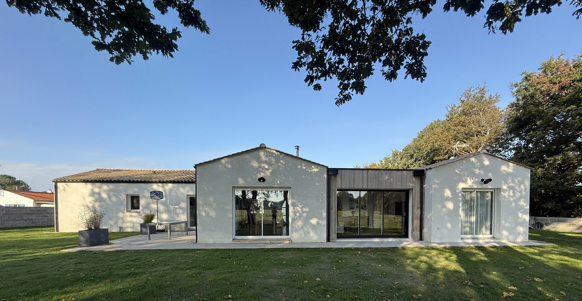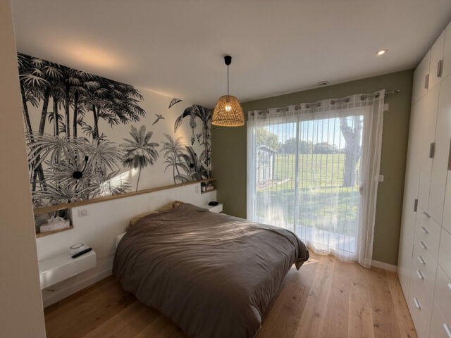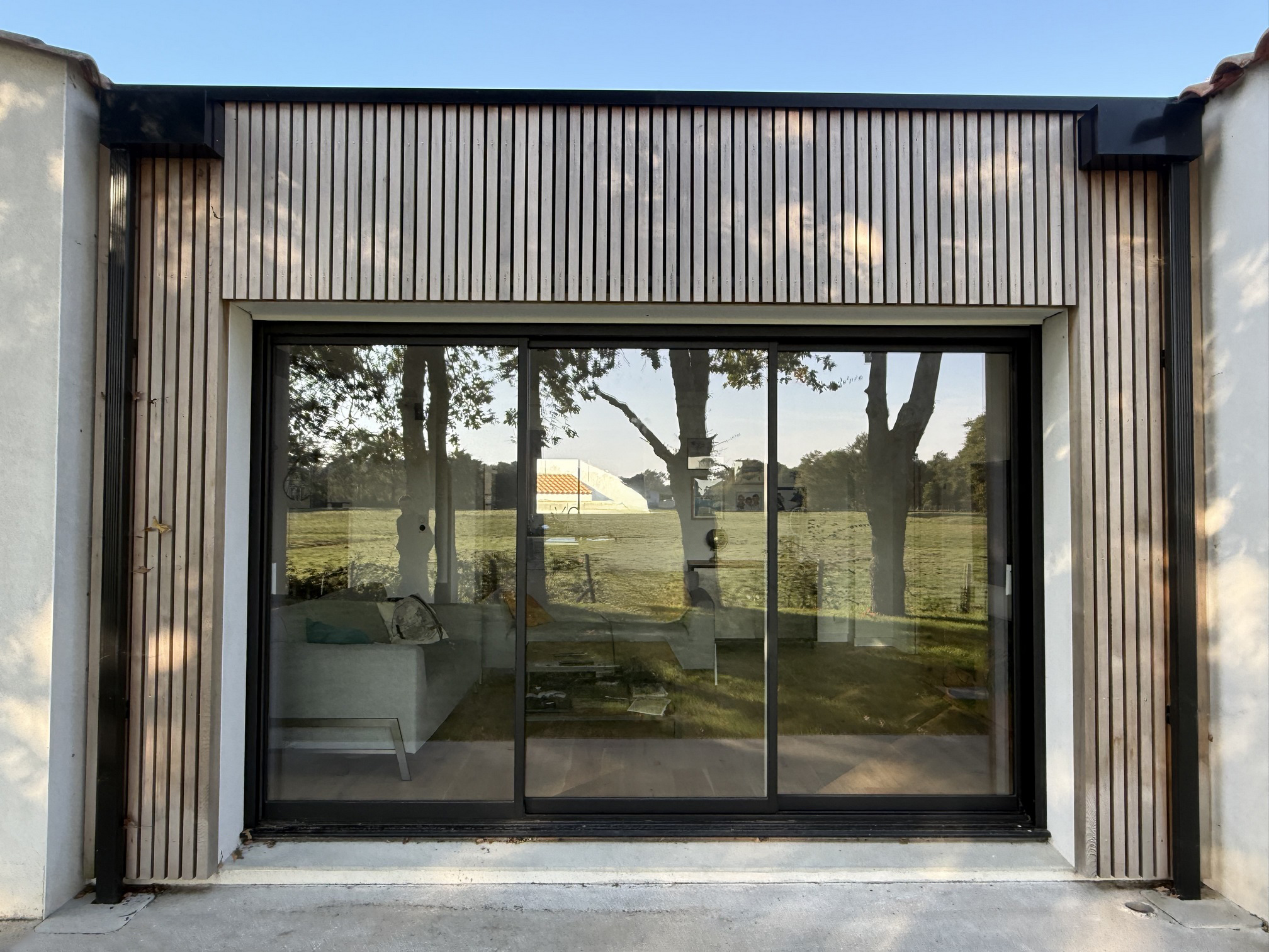 Extension moderne à Notre-Dame-de-Riez Création d’une extension contemporaine comprenant une suite parentale et un salon cocooning, pour une surface habitable de 42m². Nombre de m² 42 m² Description du projet : Un salon indépendantUne chambreUn dressingUne salle d’eau