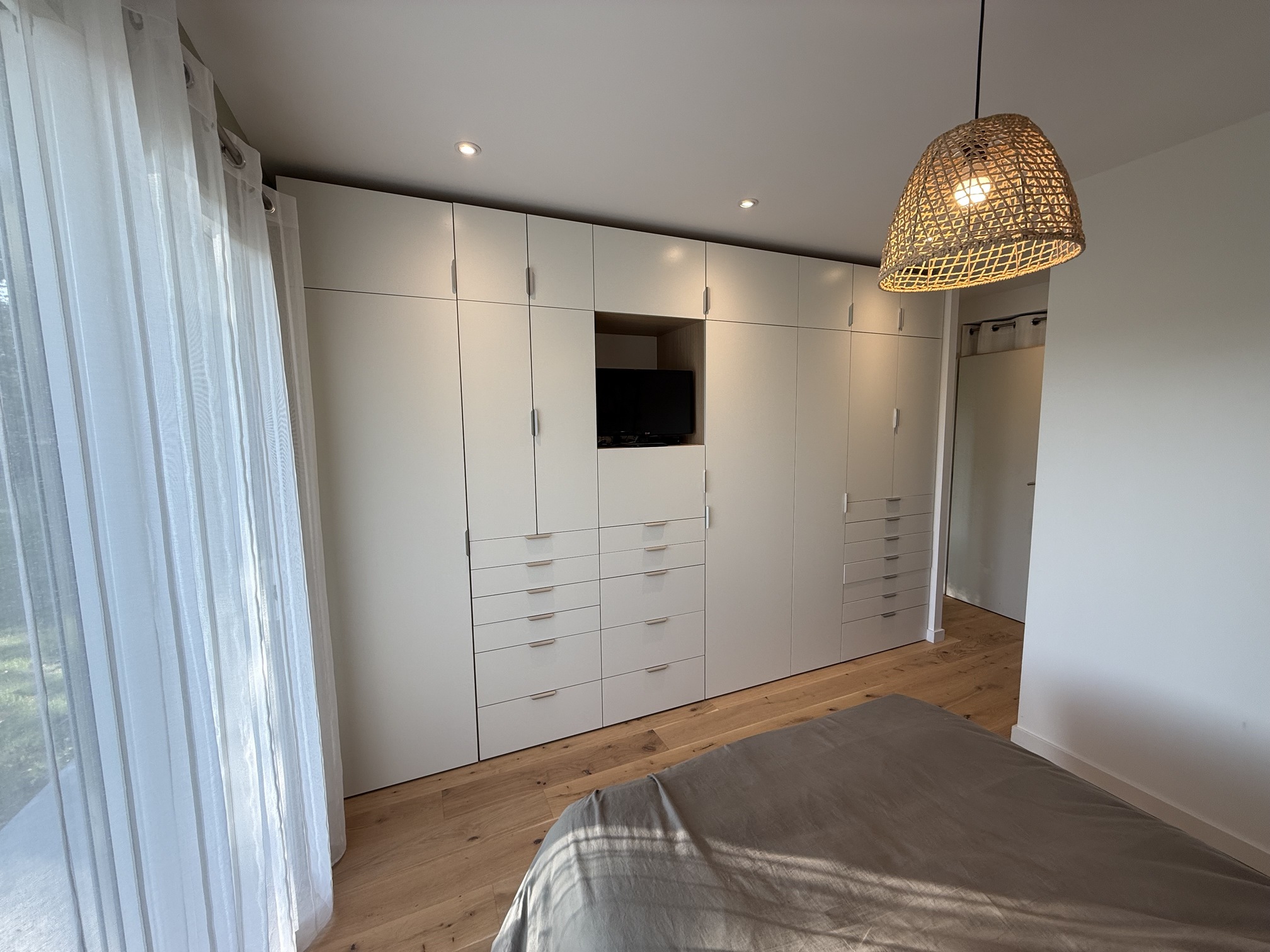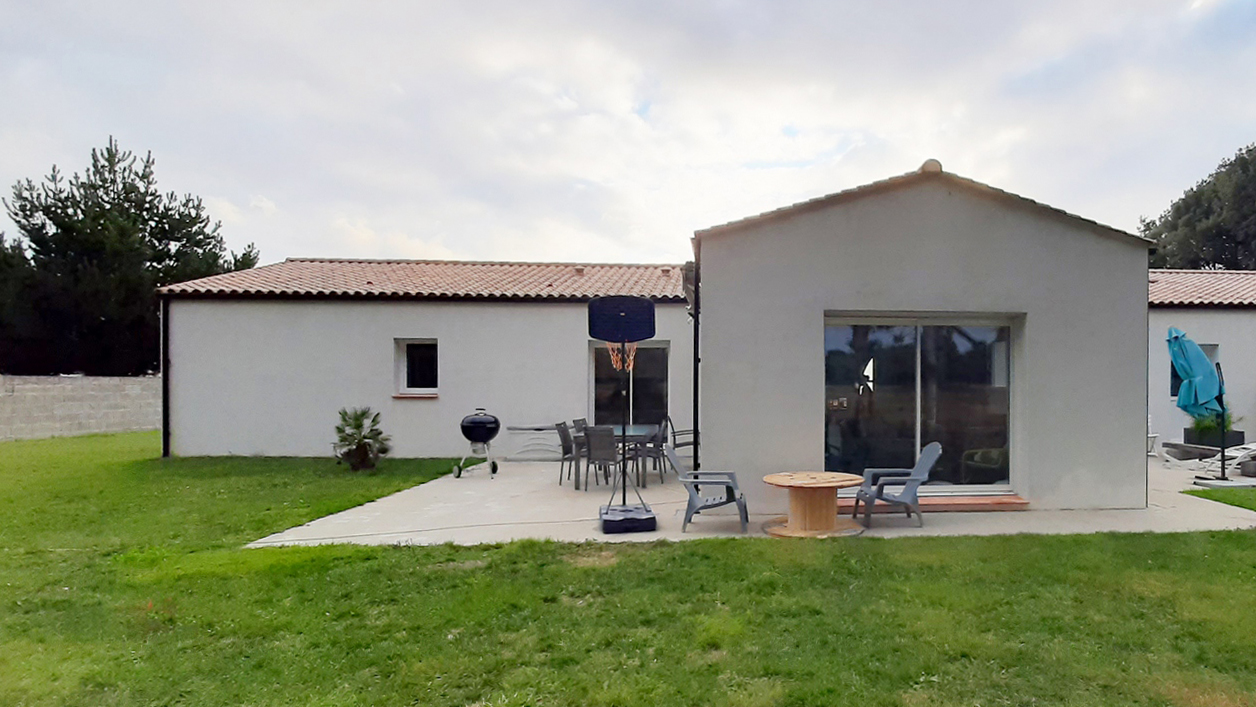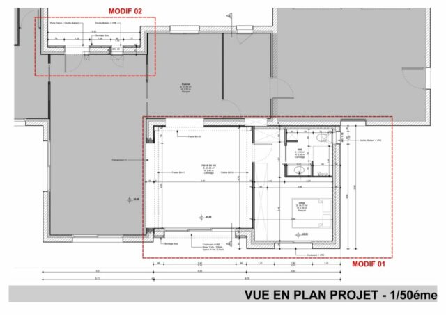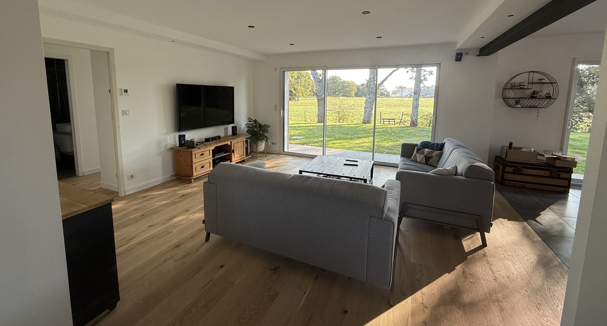 Extension moderne à Notre-Dame-de-Riez Création d’une extension contemporaine comprenant une suite parentale et un salon cocooning, pour une surface habitable de 42m². Nombre de m² 42 m² Description du projet : Un salon indépendantUne chambreUn dressingUne salle d’eau