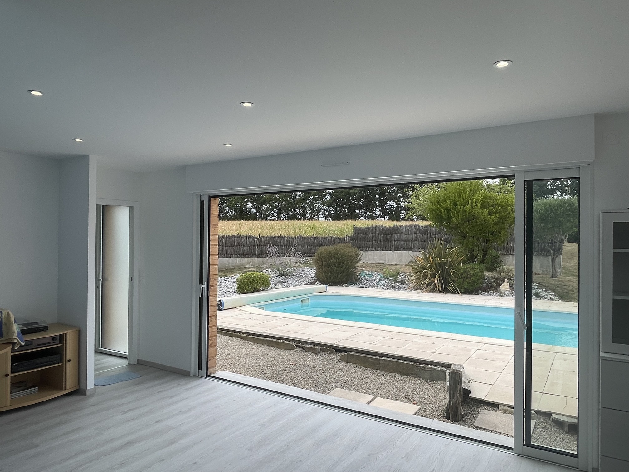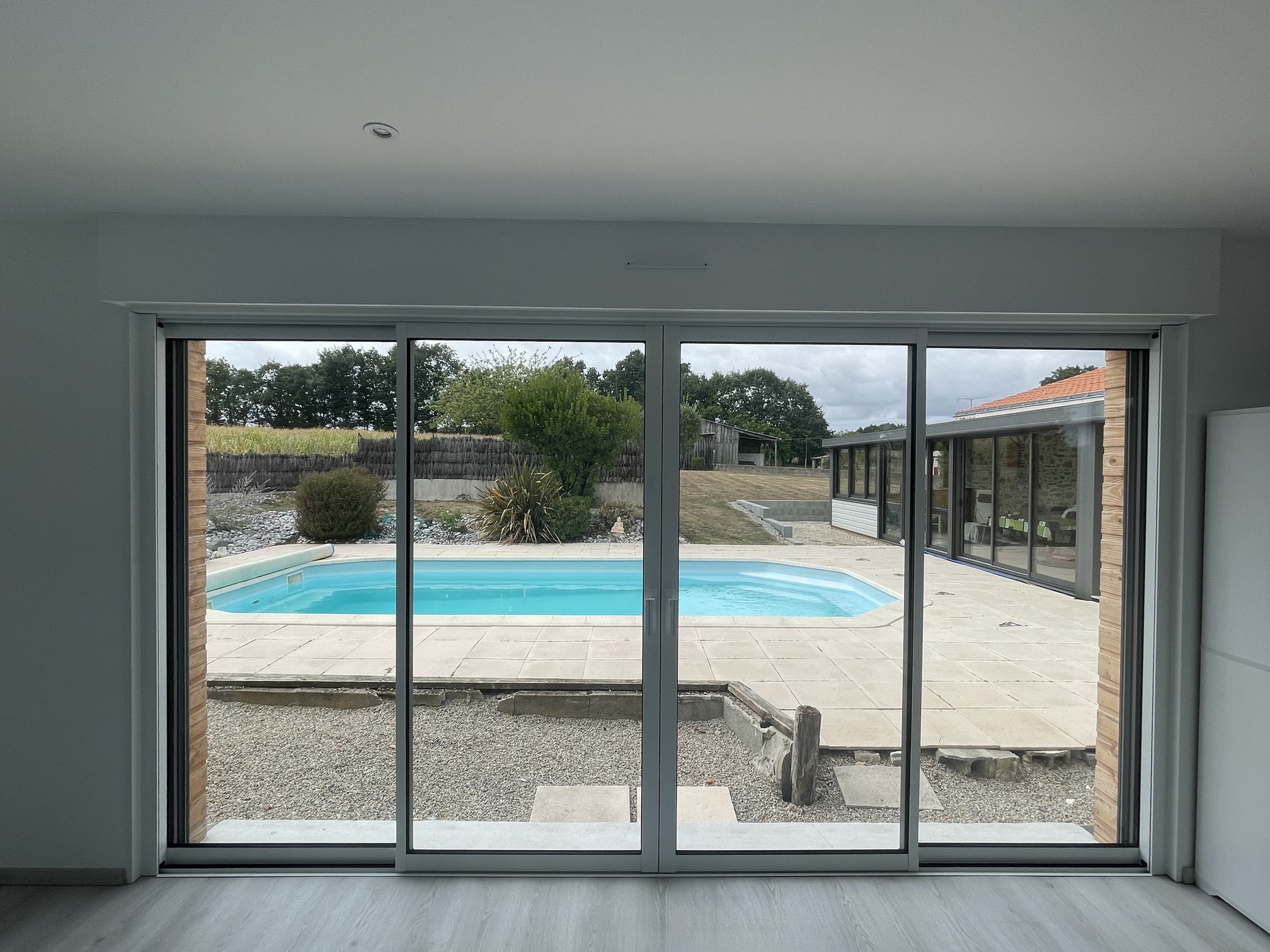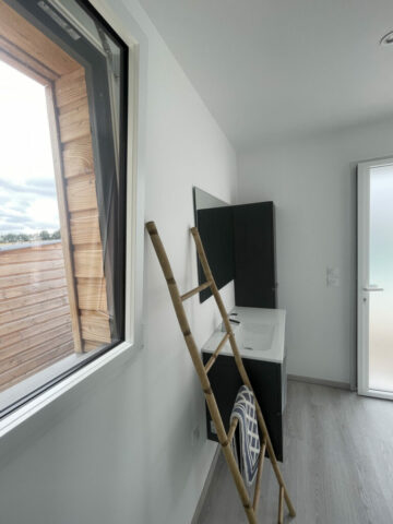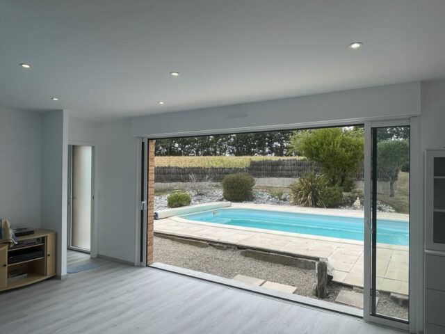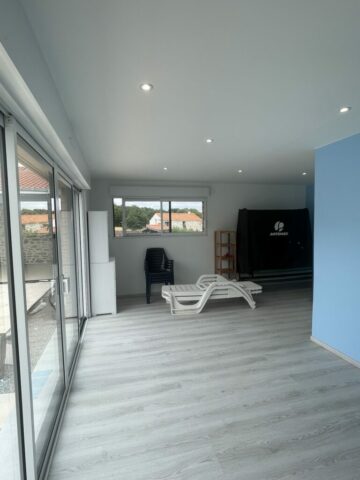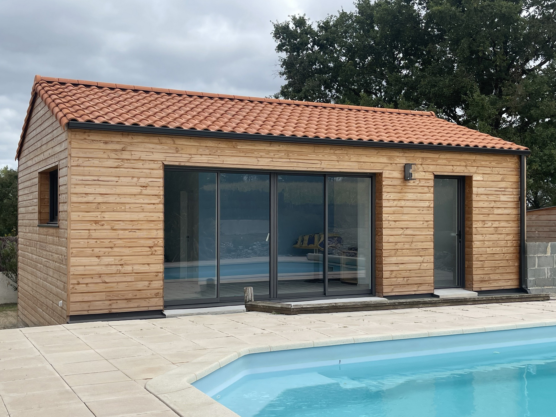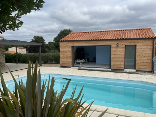 Pool house en bois à Aizenay Réalisation d’un pool house en ossature bois d’une surface de 40 m² habitables. Nombre de m² 40 m² Description du projet :Une salle d’eauUne cuisine d’étéUn local technique