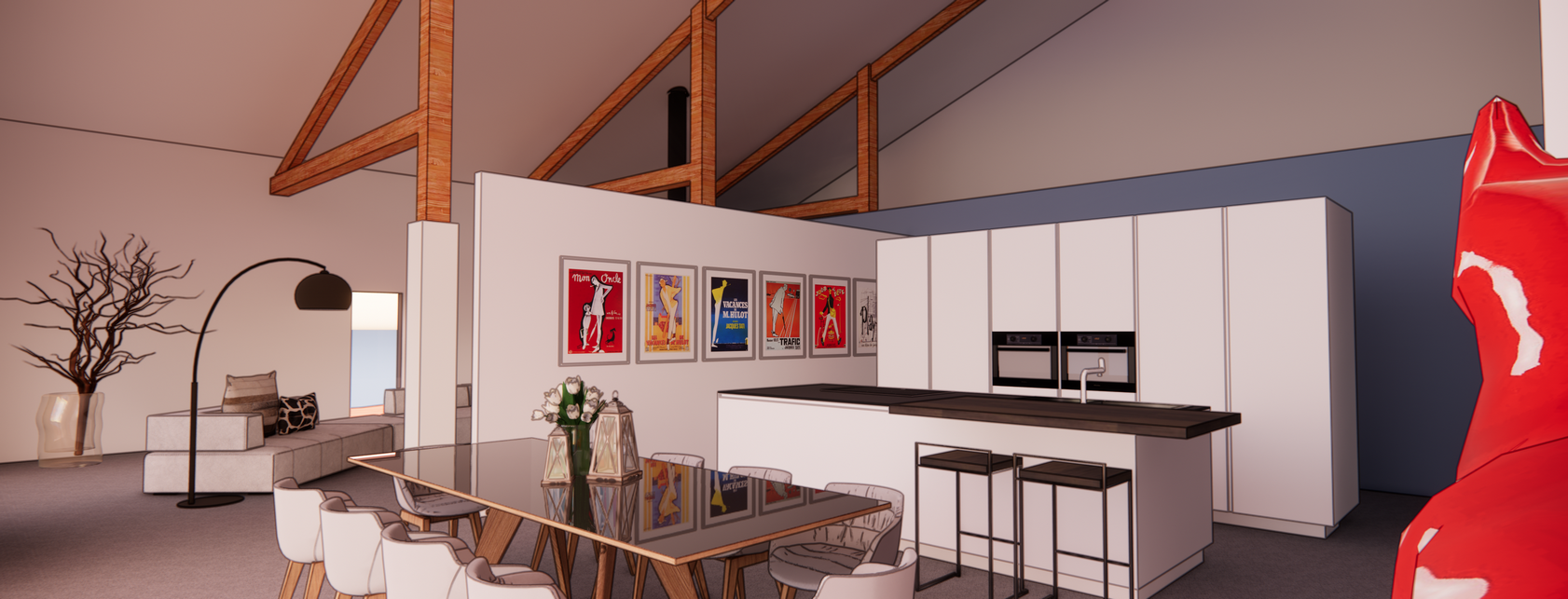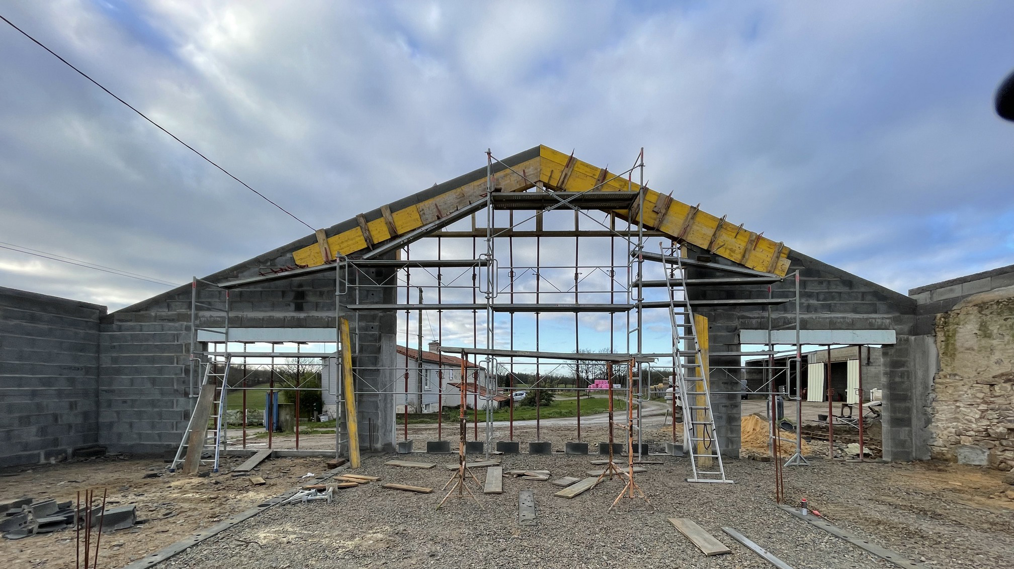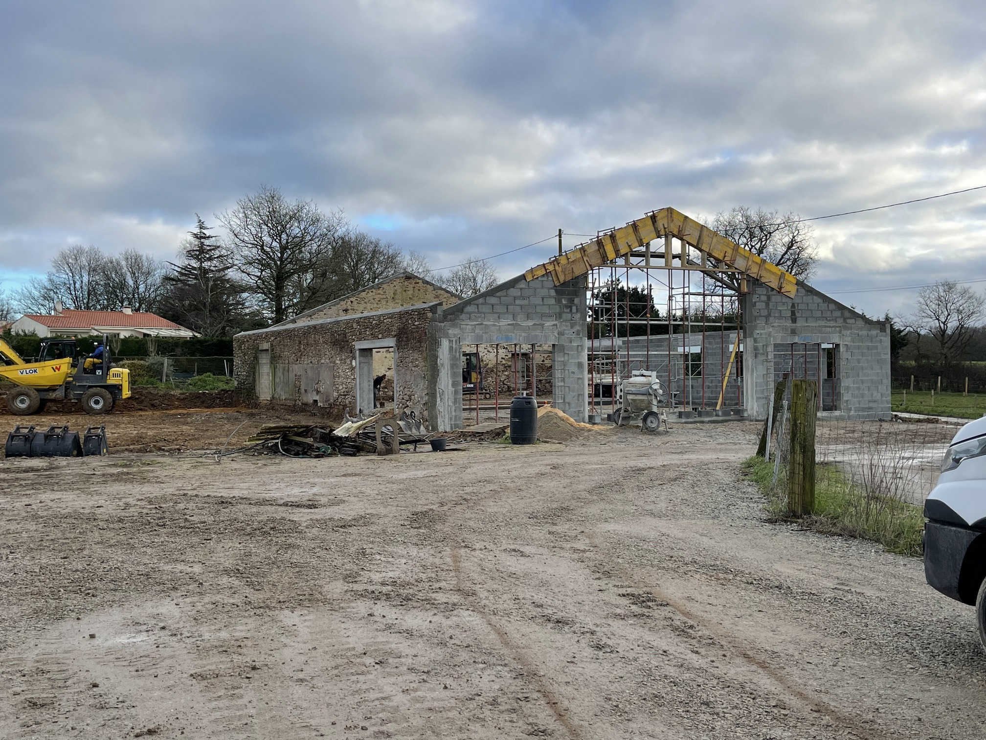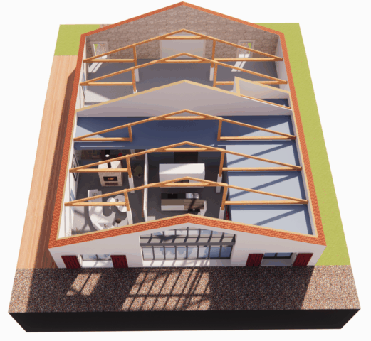 Rénovation et réhabilitation d’une ancienne grange à Aizenay Rénovation et réhabilitation complète d’une ancienne grange comprenant une maison de 198 m² habitables et un garage de 162 m². Nombre de m² 198 m² Nb de chambres 3 Nb de salles de bain 1 Pièce de vie 41 m² Description du projet :Trois suites parentales (chambre, dressing et salle d’eau)Une salle de jeux de 17 m²Un salon de 41 m²Une pièce de vie avec cuisine de 51 m²Une salle de bain avec douche à l’italienneUne seconde pièce de vie de 39 m²Un cellier / buanderieDeux WCUn garage de 162 m²